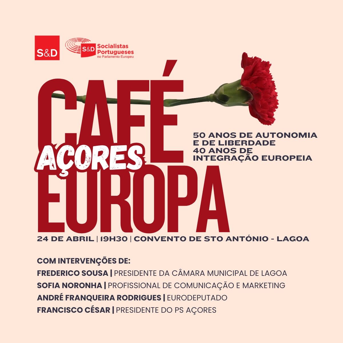 Por ocasião das comemorações do 25 de abril, a iniciativa pretende assinalar dois marcos fundamentais da história recente de Portugal e dos Açores — os 50 anos da Autonomia Política Administrativa das Regiões Autónomas e os 40 anos da Integração Europeia —, promovendo um momento de reflexão e partilha sobre o seu significado e os desafios que se colocam ao futuro da Autonomia, da Democracia e do projeto europeu.